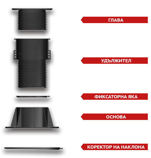 - Подсигурява се дренажно отчитане, посредством отстоянията между редените повърхности и пиадесталите.